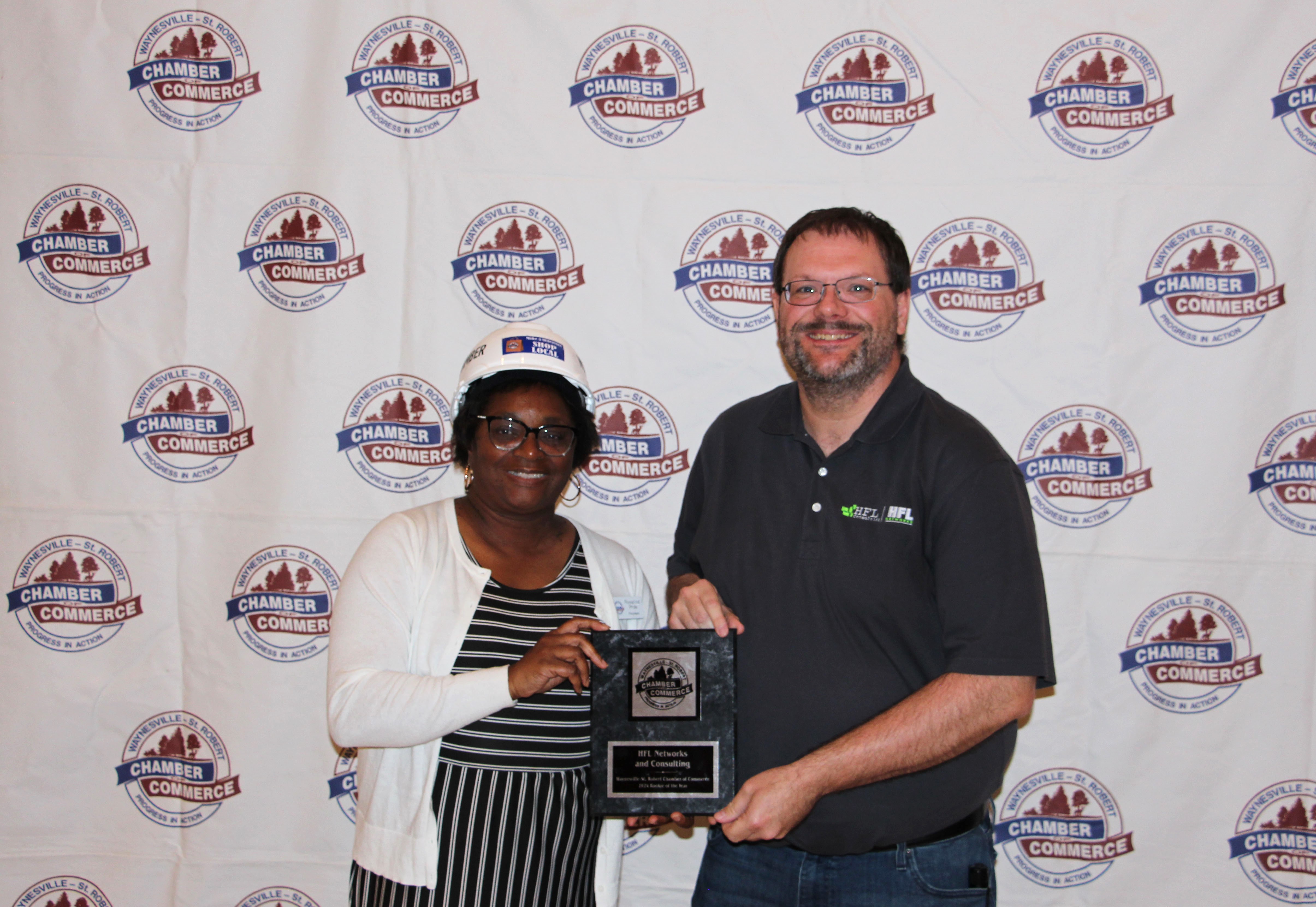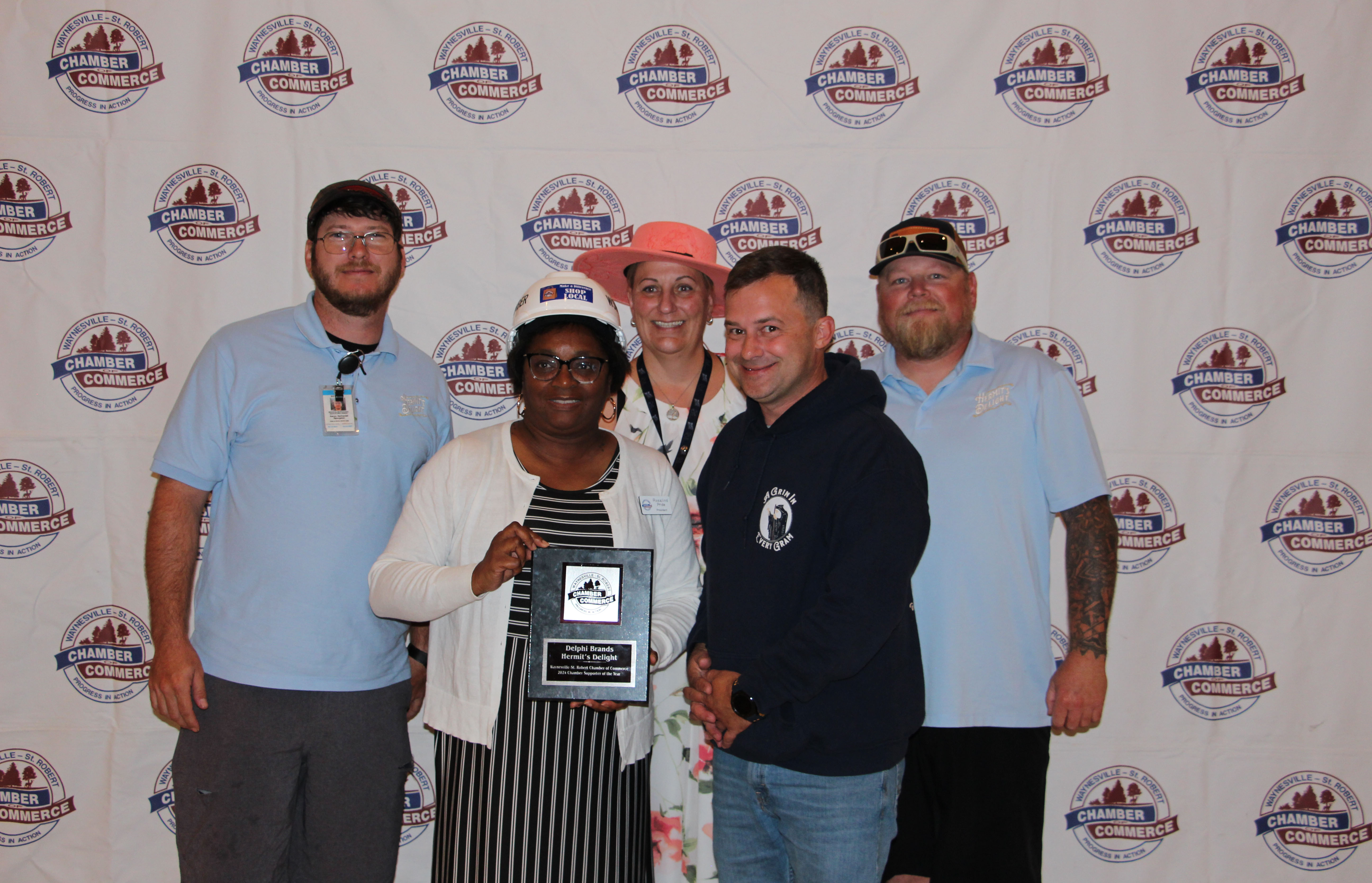 The following awards were presented at the meeting; The 2024 Rookie of the Year award went to HFL Networking and Consulting. The 2024 Chamber Supporter of the Year award was presented to Delphi Brands/Hermit's Delight. Chantel Higdon was recognized as our Refer and Earn winner, referring two new members to the Chamber. Russ Dixon was recognized with the Ambassador and Goodwill Spirit Award. Cecilia Murray, Executive Director of the Chamber, was also recognized with her 20 years of service pin, in which she will celebrate September 8th.