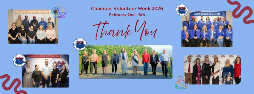 The week of February 2nd through the 6th is the thirteenth Waynesville-St. Robert Area Chamber of Commerce Volunteer Appreciation Week. The Chamber would like to recognize and thank all the volunteers that contribute to the success of the Chamber throughout the year as well as the businesses that support their volunteer efforts. Each day of Volunteer Appreciation Week is dedicated to recognizing one of the five volunteer groups that make up the Chamber’s volunteers: Chamber Ambassadors Club, Chamber Board of Directors, Governmental & Military Affairs Committee, CHOICES Program presenters, and the LPC Alumni Foundation Board.