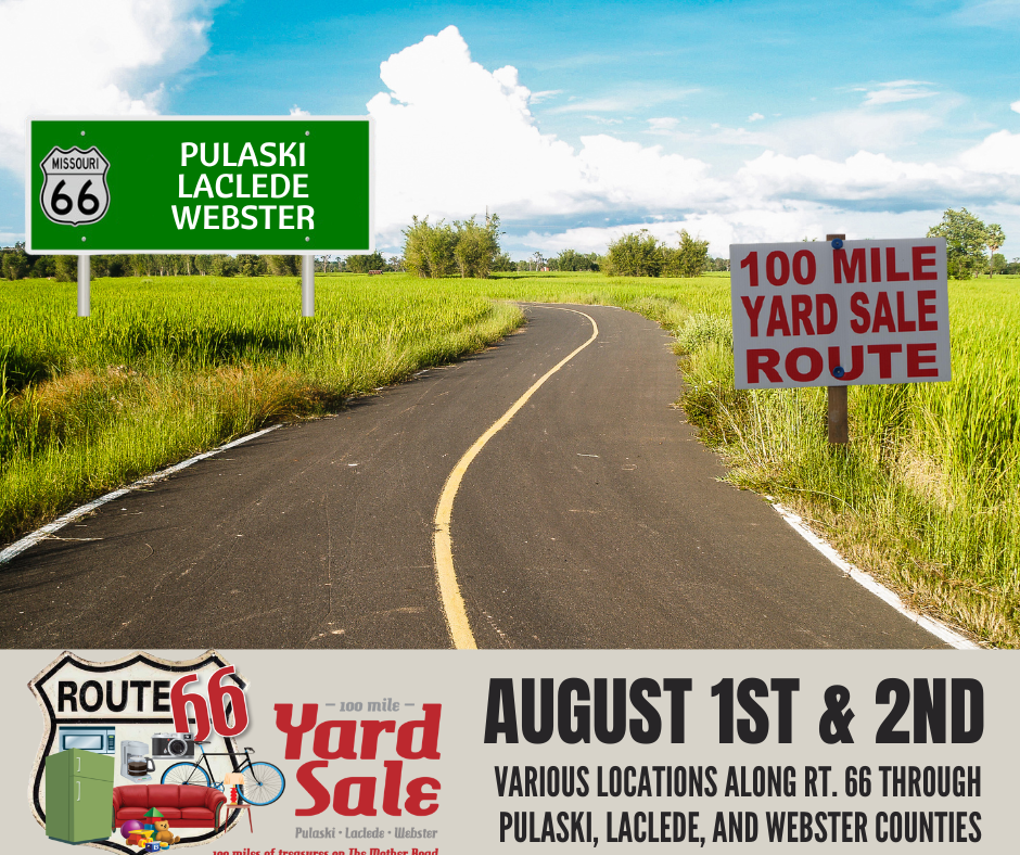 The Waynesville-St. Robert Chamber of Commerce is once again partnering with event host, the Lebanon-Laclede County Route 66 Society, the Webster County Route 66 Initiative and Pulaski County Tourism Bureau, for the Route 66 Yard Sale. The event is scheduled for Friday, August 1st, and Saturday, August 2nd. It will cover approximately 100 miles along Route 66 running through Pulaski, Laclede, and Webster counties.